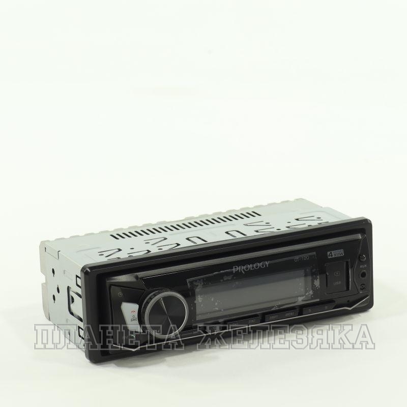 PROLOGY GT-120 — FM SD/USB ресивер с поддержкой беспроводной технологии Bluetooth — это недорогая современная и широкофункциональная автомагнитола стандартного установочного размера 1DIN с минимальной монтажной глубиной в 78 мм. Автомагнитола GT-120 обеспечивает качественный прием радиостанций в диапазоне FM и сохраняет в памяти до 18 станций, которые легко настроить при помощи автоматического поиска, воспроизводит самые популярные форматы медиафайлов: FLAC, MP3, WMA, WAV, записанных на карты памяти USB или microSD. На передней панели устройства имеются: вход AUX, слот для microSD, разъём с интерфейсом USB и встроенный микрофон для громкой связи.