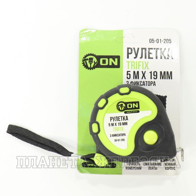 Рулетка ON с обрезиненным корпусом.Удобна при работе одной рукой.