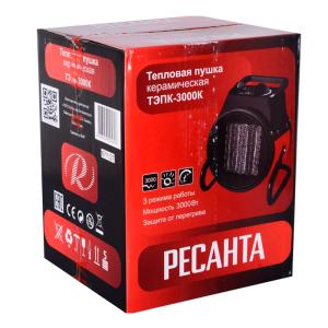 Ресанта ТЭПК-3000К — надежный и эффективный нагревательный прибор для установки в неотапливаемых жилых помещениях, на бытовых складах, в гаражах и производственных цехах. Тепловая пушка может работать в качестве обычного вентилятора с мощностью 25 Вт для просушивания погребов или автоматически поддерживать нагрев в двух режимах: 2000 Вт и 3000 Вт. Этого достаточно для обеспечения комфортной температуры на площади до 30 кв.м.