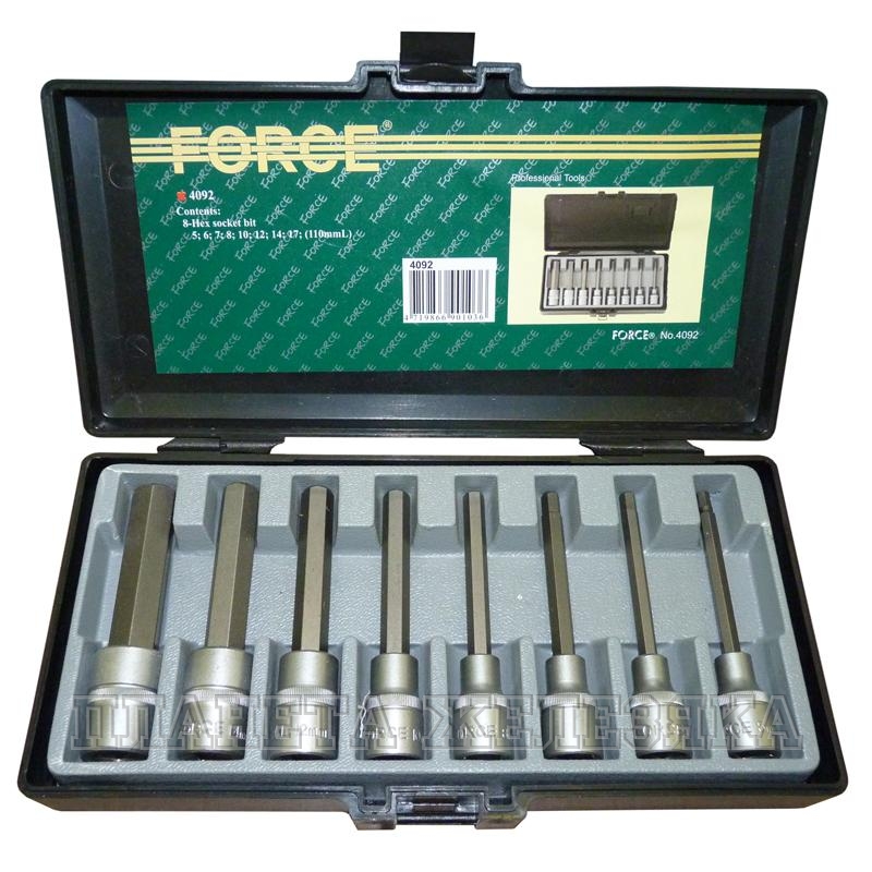8 головок 1/2" с битам HEX 5; 6; 7; 8; 10; 12; 14; 17 (110мм).