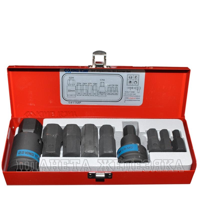 Набор ударных торцевых насадок KING TONY отличается жесткостью конструкции и устойчивостью к деформации. Замок металлического кейса исключает его случайное открытие в процессе транспортировки и, соответственно, потерю элементов набора. Комплект включает в себя оснастку для работы с крепежом шестигранного профиля.