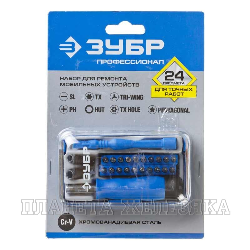 Биты 20 шт: SL 1, 1.5, 2.5; PH 000, 00, 0, 1; ТХ 3, 4, 5; ТХ HOLE 6, 7, 8, 9, 10, 15, Triwing 0, 1; Pentagonal 1, 5;