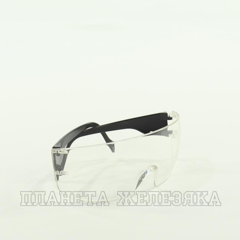 Защитные прозрачные очки типа с чёрной дужкой.Защищают глаза от механического поражения во время различных работ,предохраняют органы зрения от брызг строительных растворов и летящих твёрдых частиц.В ыполнены из ударопрочного поликарбоната, обеспечивающего долгий период службы,при использовании очков отсутствует искажение видимости.