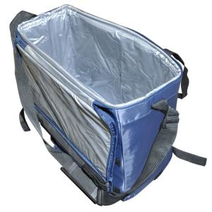 Сумка снабжена мягкой термоизоляцией и откидной крышкой.