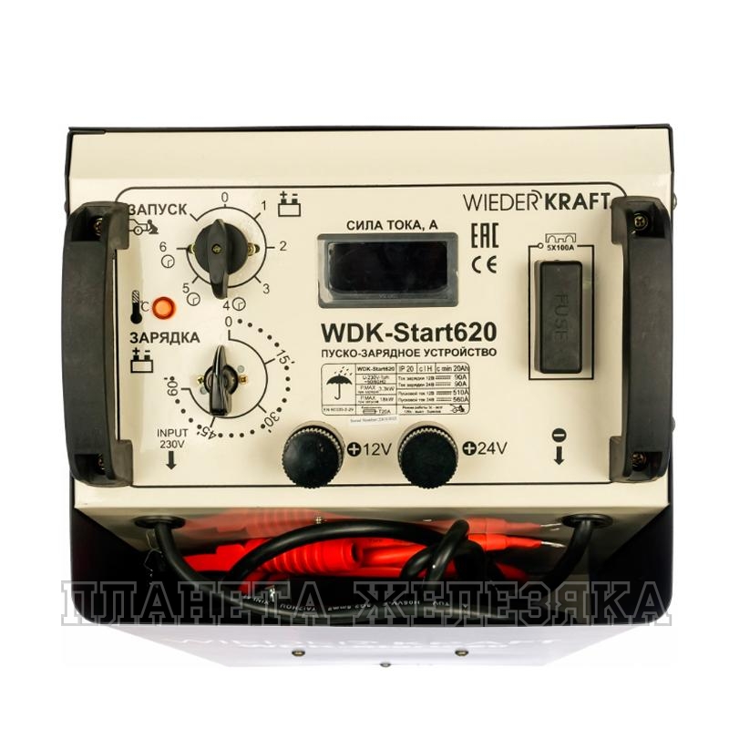 Пуско-зарядное устройство (трансформаторное, для аккумуляторов до 1000Ач) WIEDERKRAFTWDK-Start620 представляет собой простой в обслуживании и управлении аппарат для работы с аккумуляторами транспортных средств вплоть до грузовиков. Контроль заряда осуществляется при помощи встроенного амперметра.