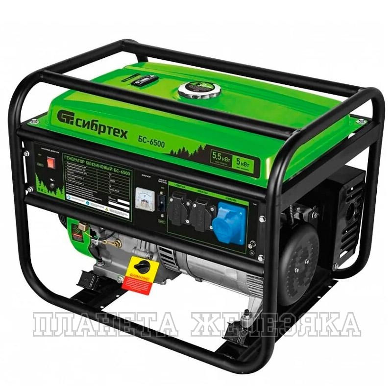 Бензиновый генератор Сибртех БС-6500 подойдет для создания целой электросети в загородном доме, магазине, мастерской или на строительной площадке. Одновременно можно подключить: 5 ламп накаливания, холодильник, телевизор. Наличие 3 розеток, одна из которых силовая 32А, позволяет запитать мощное оборудование, например, электрическую плиту. Полного бака топлива хватит для работы в течение 9,6 часа. Преимущества: Система AVR стабилизирует напряжение на выходе, и обеспечивает возможность подключения чувствительных приборов. Уровень бензина легко контролировать с помощью индикатора на баке. При низком уровне масла, перегрузке или коротком замыкании система защиты отключит двигатель автоматически для исключения поломки,что обеспечивает долговечность и надежность генератора. Металлический распредвал и медная обмотка альтернатора обеспечивают стабильность работы двигателя. Генератор оборудован металлической рамой, которая защищает его от повреждений. Элементы управления вынесены на переднюю панель для удобства работы. Система воздушного охлаждения поддерживает температуру двигателя,что обеспечивает его стабильную работу.